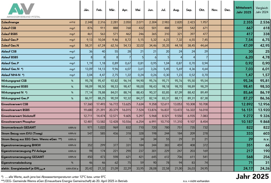 Betriebsdaten 2025 - Monatsmittelwerte